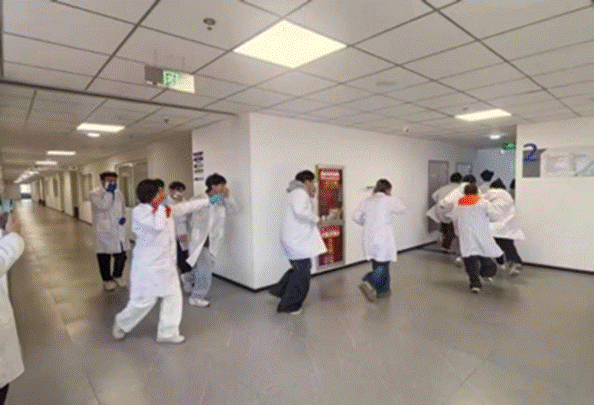 14时50分,八角湾校区实验楼内消防警报骤然响起,听到消防警报,各实验室负责人立即指挥实验室学生停止操作、关闭电源气源,然后引导学生用湿毛巾捂口鼻、弯腰低姿沿预定疏散路线迅速撤离至楼外安全区域。
