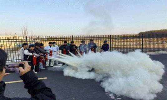 疏散逃生演练结束后,开发区消防大队消防员为师生进行了防火知识培训,介绍了火灾形成规律、扑救初起火灾的基本技能以及灭火器、消防栓的使用方法,并组织学生分批次进行了现场灭火演练。